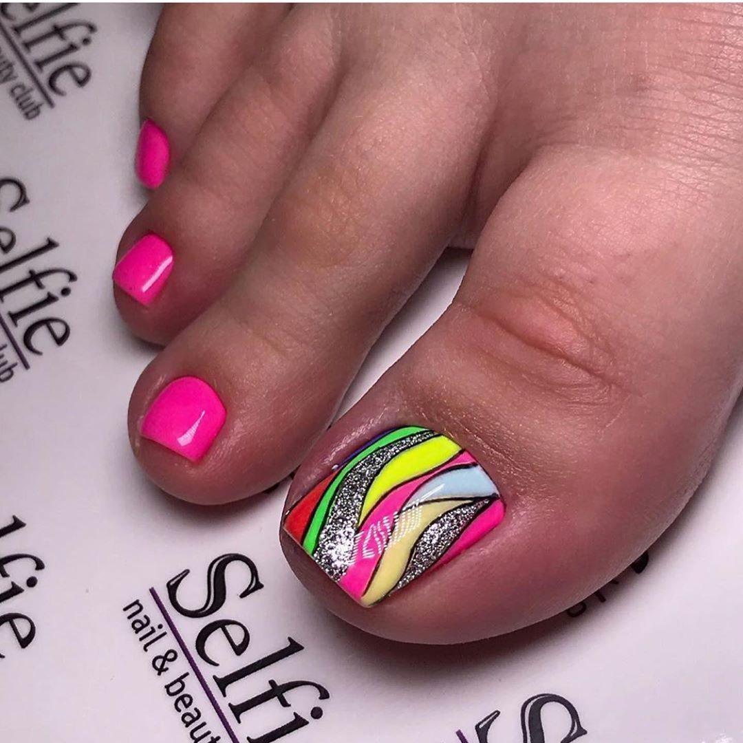 Неоновый педикюр дизайн молодёжный