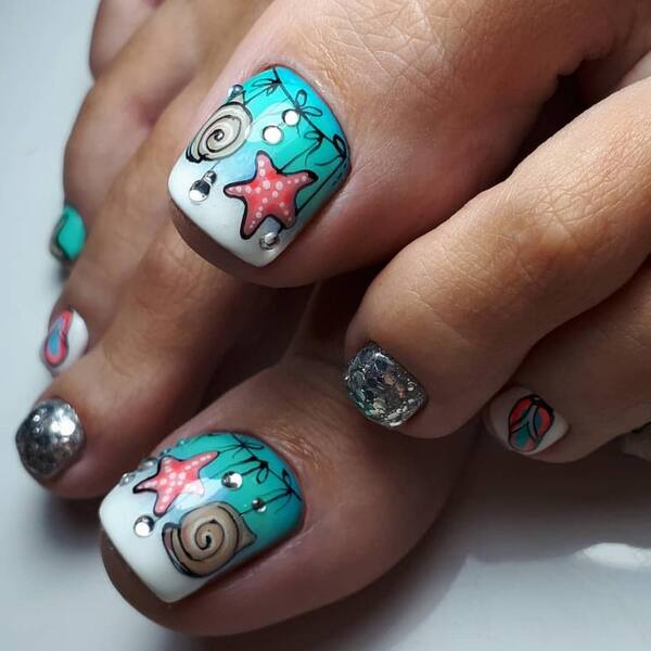 Морские элементы в дизайне педикюра