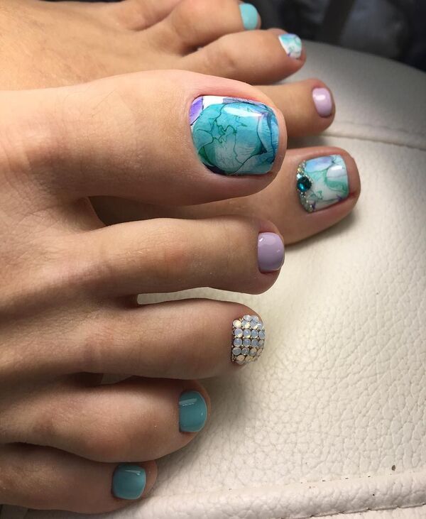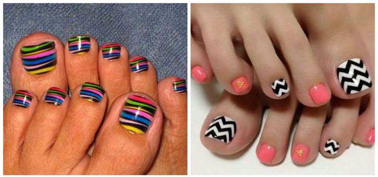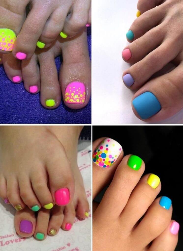 Разноцветные виды педикюра