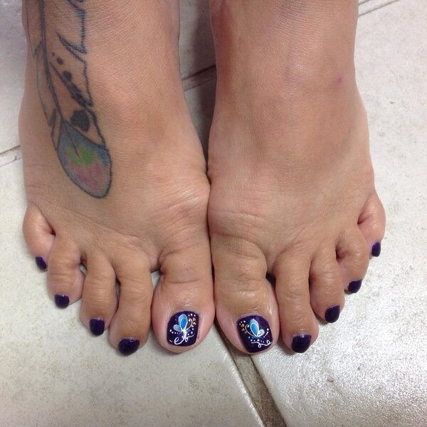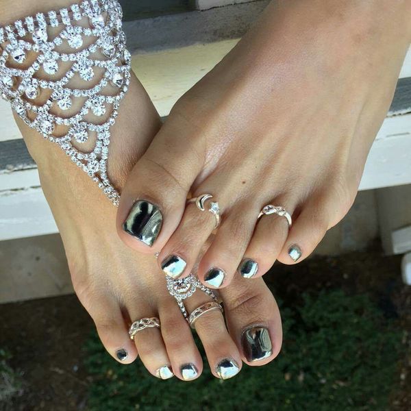 Это необычный способ привлечения внимания к ногам, который часто хотят обладательницы красивых стоп. Обычно его выбирают те, кто хочет носить акцентную обувь с открытыми носками.
