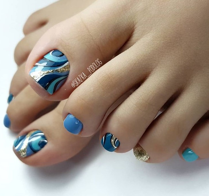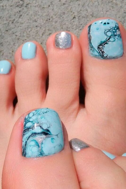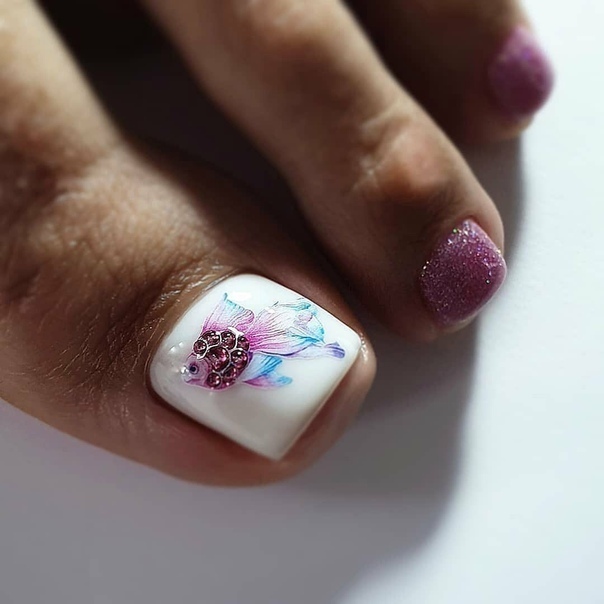 Аквариумный дизайн довольно давно вошел в моду и потом был забыт на несколько сезонов. Но недавно он снова вернулся в тренды. Но практически сразу был исключен за свою неоднозначность. В педикюре мы не рекомендуем экспериментировать не с аквариумным дизайном, не с объемным. Имеется в виду, например, 3 d — лепка. Излишества такого рода абсолютно точно не в приоритете и не позволят вам создать стильный педикюр