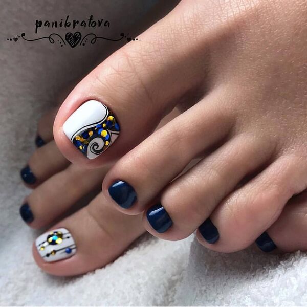 Такой дизайн можно уместить даже на самых маленьких ноготках на ногах.