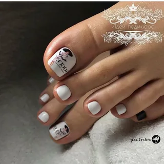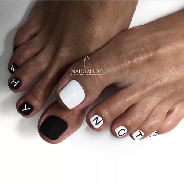 - рисунки – ногти на больших пальцах ног могут стать холстом для художника, в этом сезоне модными остаются рисунки в мультяшном стиле, надписи, примитивные силуэтные изображения, абстракция;