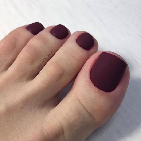 Если в обычном женском маникюре матовое покрытие уходит на второй план, в педикюре его можно считать трендом лета. Матовые лаки или матовые топы определенно стоит включить в свой каталог окрашиваний.