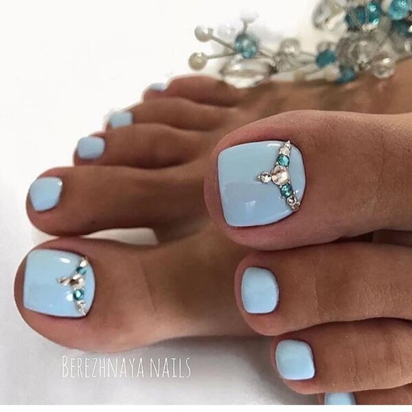 При выборе своего небесного цвета важно ориентироваться на цветотип и оттенок кожи. Цвет должен украшать ваши ножки, а не наоборот