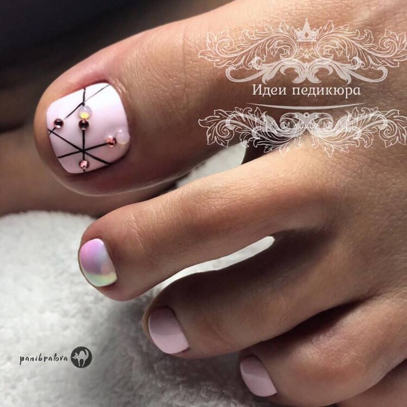 декор – при создании педикюра не рекомендуется использовать объемный декор с крупными стразами, лепниной, шармами. Во-первых, такой дизайн будет смотреться громоздко на небольшом пространстве ногтевой пластины, во-вторых, объемный декор может доставлять массу неудобств при носке закрытой обуви.