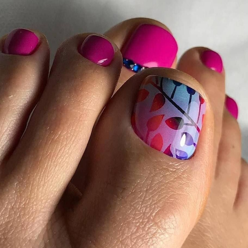Педикюр малинового цвета — необычная яркая техника 1