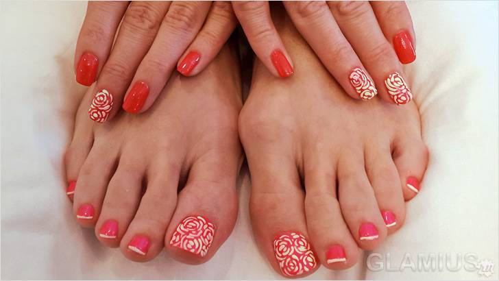 Маникюр и педикюр с использованием шеллака выполняется по одной и той же технологии.