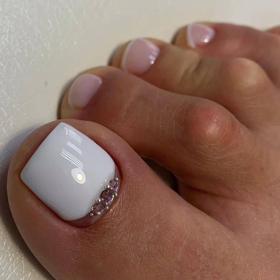 Белый френч-маникюр просто требует идеального состояния ногтевых пластин и ног в целом! Даже самый модный дизайн не спасет ситуацию, если ноги регулярно не обрабатывать скрабами, пилингами, пемзой, пилочками и другими инструментами, необходимыми для ухода. Избавление от кутикулы с помощью специальных средств, придание ногтям идеально ровной симметричной формы – эти условия для френча являются обязательными.