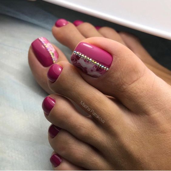 Педикюр малинового цвета уже давно радует обладательниц прекрасного пола. Этот яркий, сочный и модный оттенок не оставит равнодушным ни одну девушку.