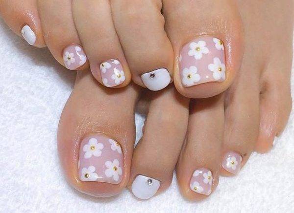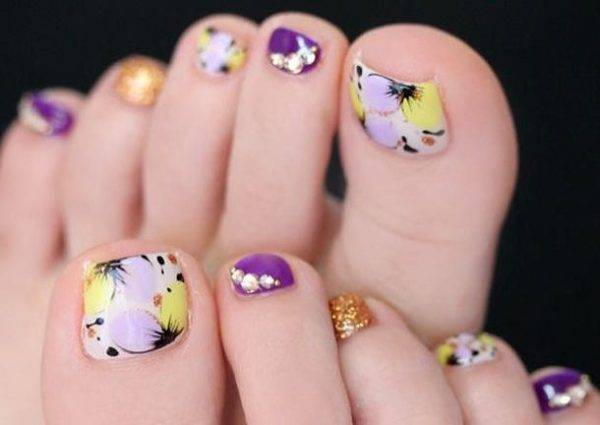 Некоторые женщины находят однотонный педикюр слишком скучным и неинтересным. Для того чтобы разнообразить его дизайн, можно использовать различные техники нейл-арта и декорирование.