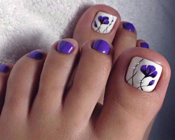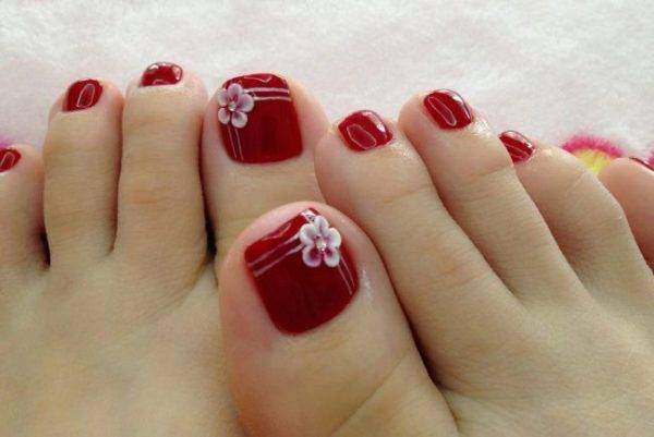 Одним из способов придать педикюру как светлую нежность, так и вызывающую дерзость являются рисунки. Их можно размещать либо исключительно на большом пальце ноги, либо на поверхности всех ноготков – все зависит от вашего желания и настроения. Сегодня выполнение даже самого простого педикюра стало творческим процессом – его делают при помощи затейливых узоров, завитков, абстракций, геометрических фигур и различных изображений, которыми можно разнообразить любой скучный дизайн.