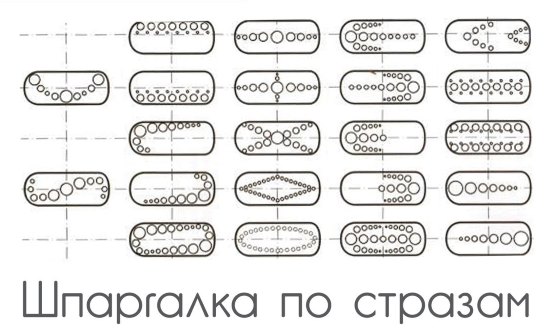 Ассортимент страз зашкаливает. Они могут быть различных цветов и оттенков, степени прозрачности и вида огранки. Благодаря разнообразию материала, будет несложно воплотить в жизнь даже самый смелый, самый сложный узор.