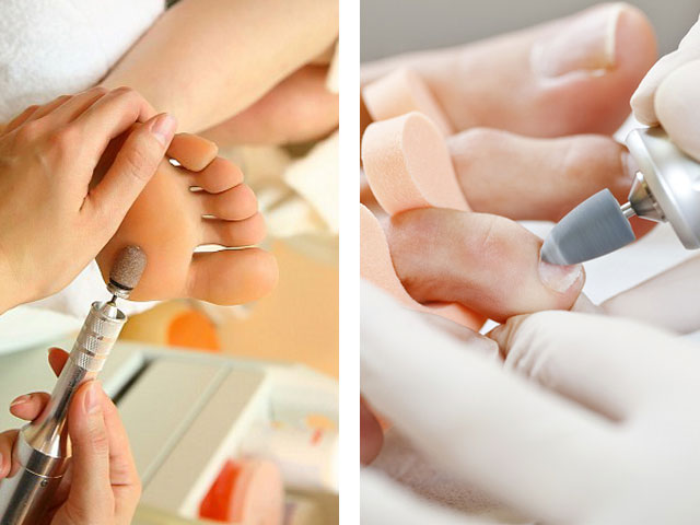 Нужно избавиться от натопышей и от грубых ороговевших участков тканей.