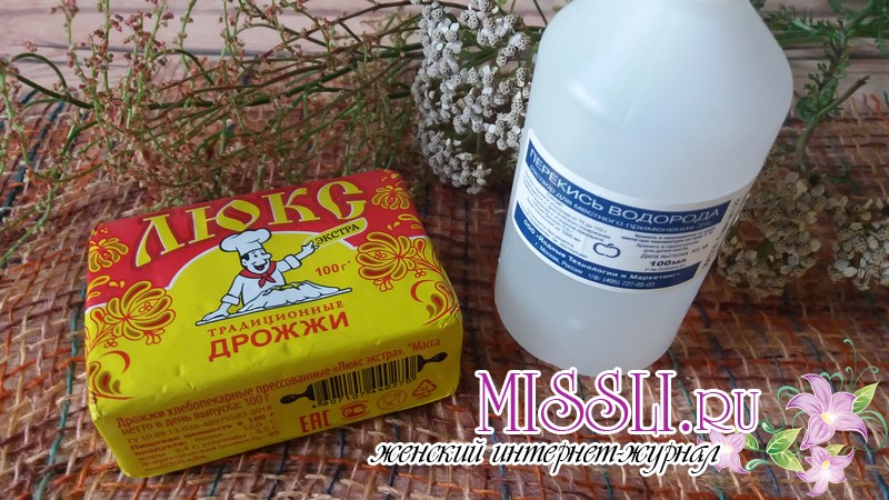 Для приготовления состава потребуется столовая ложка дрожжей, чайная ложка лимонного сока и чайная ложка перекиси. Дрожжи разводят с перекисью и тщательно перемешивают, затем добавляют в смесь лимонный сок и доводят до однородной консистенции.