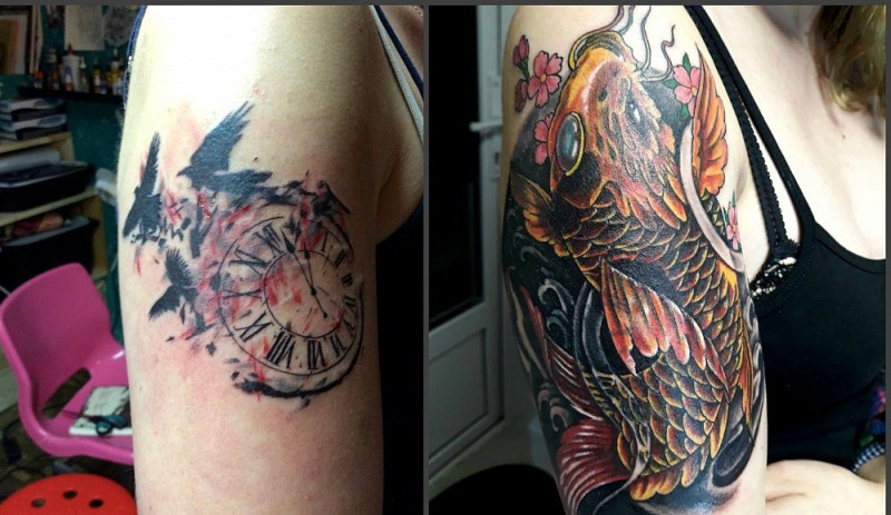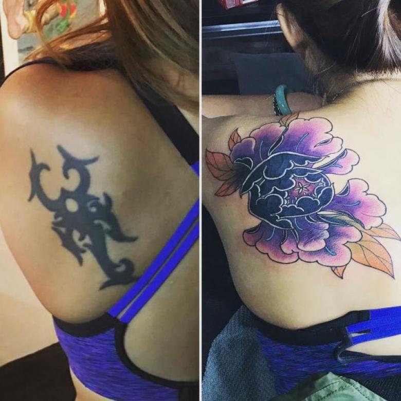А какой у вас был опыт с перекрытием татуировок? Вам нравится новый рисунок?