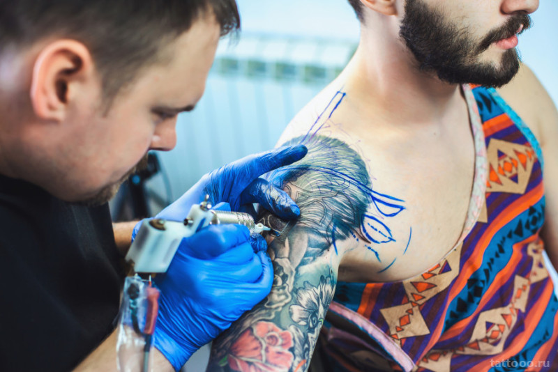 После тщательной прорисовки всех деталей нового изображения мастер приступает к сеансу. Будьте готовы, возможно, одним посещением тату-салона не ограничиться.