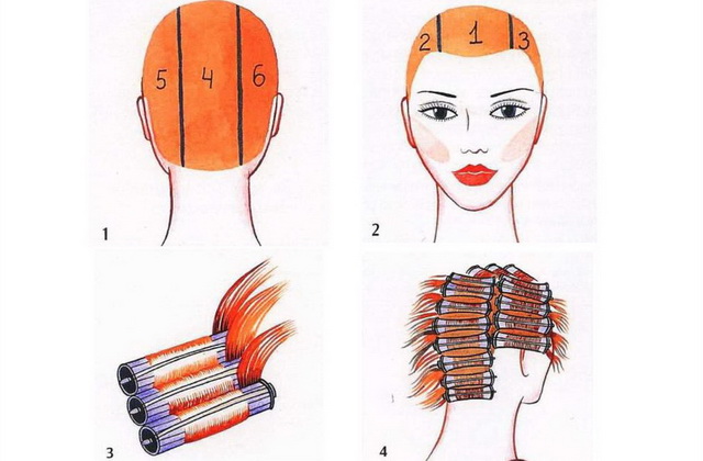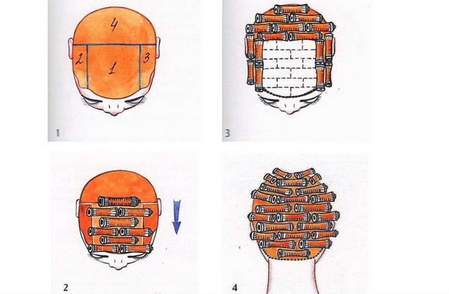 - Начинают процесс накручивания с нижнезатылочной зоны, отделяя пряди вертикальными проборами.