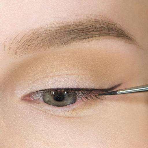 Легкий выход тонкой стрелки комбинируют с межресничным заполнением. Такой вариант избавляет от хлопот с подводкой и позволяет наносить любой макияж.