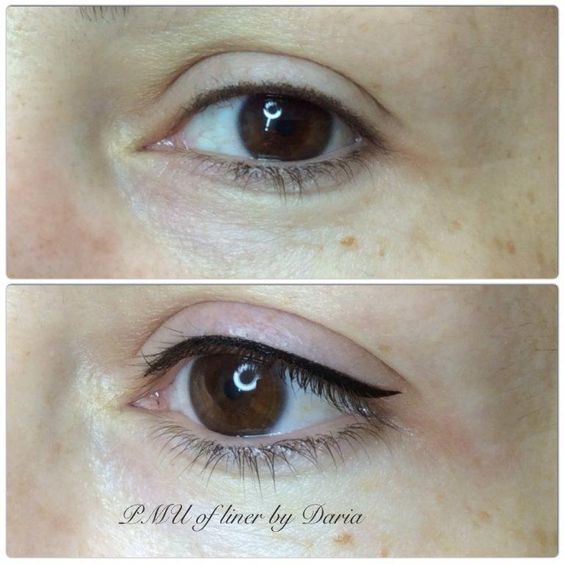 Можете наглядно увидеть результат перманентного макияжа глаз на фото до и после: