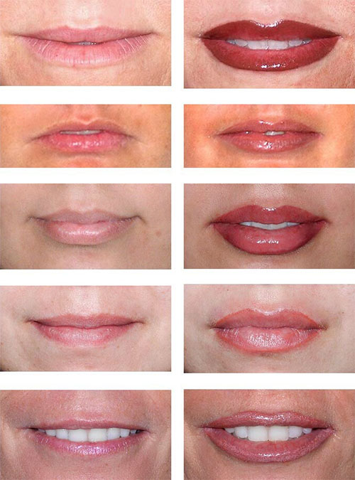 Выравнивание. Перманентный макияж поможет скрыть маленькие дефекты на губах. С возрастом, контур расплывается, цвет тускнеет, уголки опускаются. Татуаж может вернуть форму и насыщенность. В некоторых случаях перманентный макияж зрительно скроет врожденные дефекты: заячью губу, кривизну и пр.