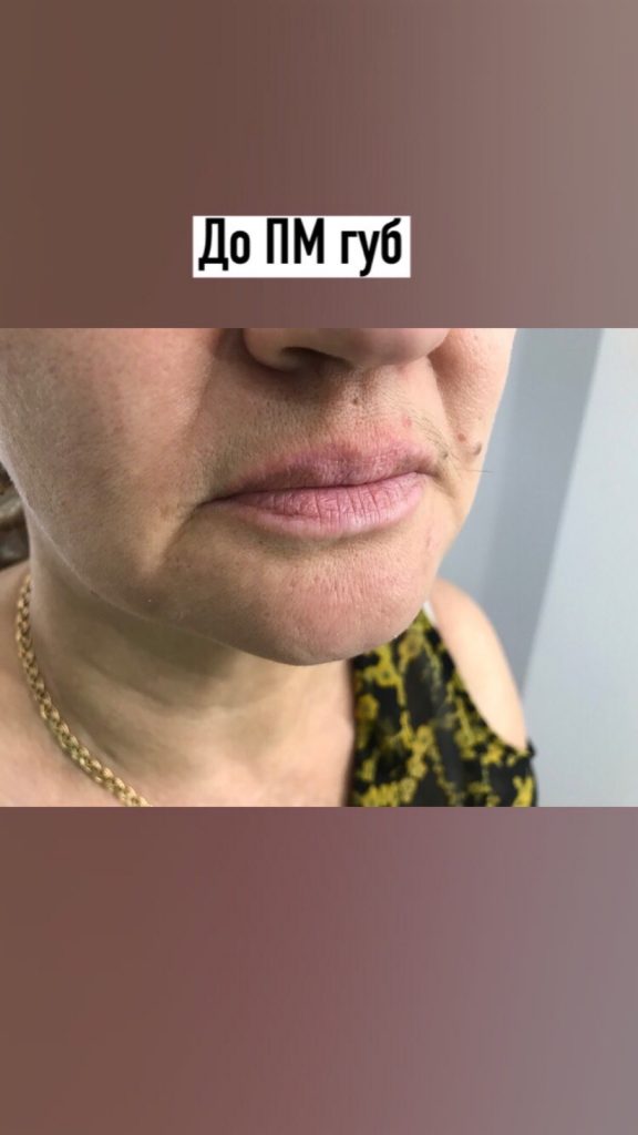 Видео сразу после перманентного макияжа губ, на фото – губы до перманента и заживший результат