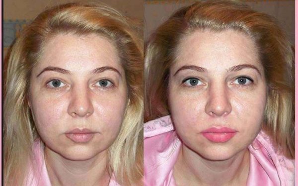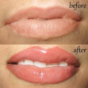 Татуаж губ с растушевкой цвета в естественный оттенок (фото до и после)