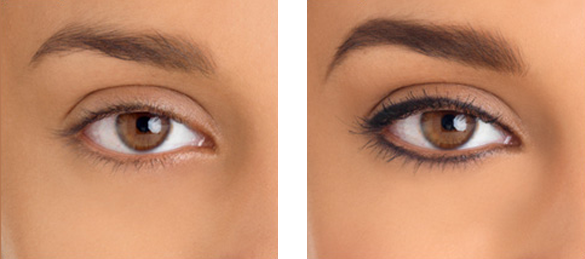 Эта техника подразумевает нанесение красящего вещества в пространство между ресничками. Татуаж выглядит максимально естественно, и в то же время – глаза не нужно красить. Взгляд становится более выразительным, а у ресниц появляется дополнительный объем.