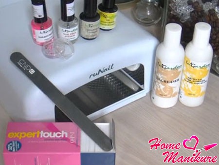 - Жидкость для снятия гель-лака. Можно воспользоваться и обычным средством, в составе которого присутствует ацетон.