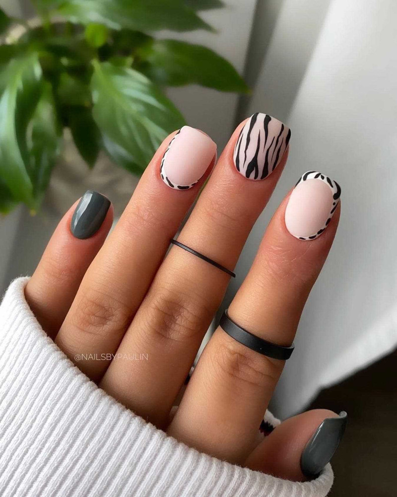 В 2022 году модный также градиент с черным цветом или сочетание омбре на одних пальцах с более четким геометрическим рисунком на других теми же цветами.
