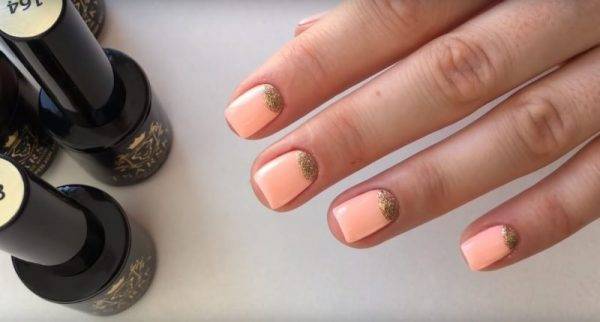Персиковый цвет приближен к естественному оттенку кожных покровов. При этом он не сливается. Поэтому становится идеальной основой для маникюра на короткие ногти. Советы по оформлению пластин: