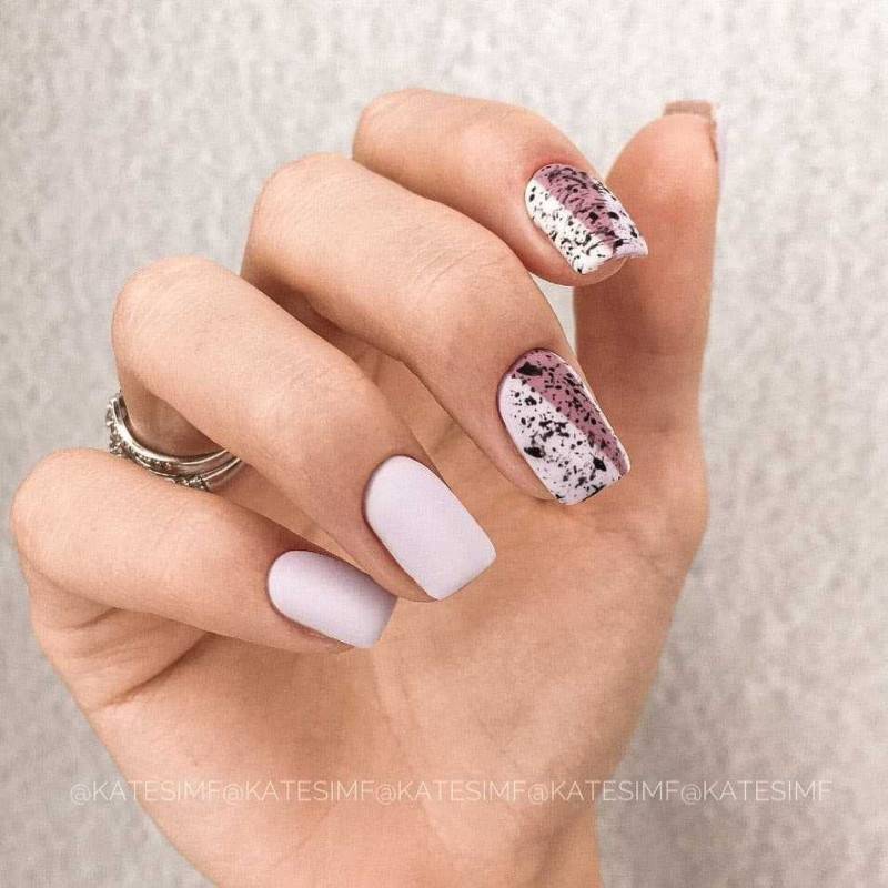 В 2022 годах такой дизайн лучше всего смотрится на миндальной форме, а также с мягким коротким квадратом. Точки могут быть как большие, похожие на горошек, так и совсем маленькие, напоминающие брызги кистью. Серебряный, белый и другие светлые цвета помогут создать более “конфетный” эффект, в то время как темные точки, наоборот, сделают розовые ногти более сдержанными и дерзкими.