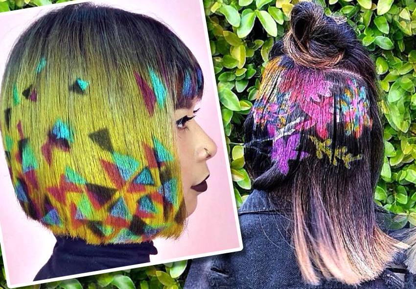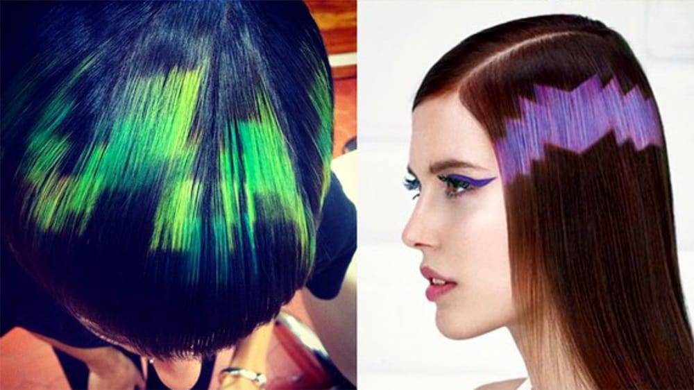 Если ты не уверена, пойдет ли тебе такая футуристическая окраска, договорись с парикмахером и поэкспериментируй с трафаретом и временными красками