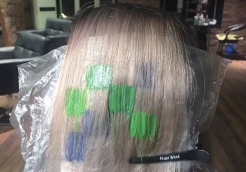До презентации новаторской технологии мадридскими стилистами пиксельные рисунки наносились только по трафарету на верхних прядях. Недостаток такого подхода в том, что он не учитывает подвижность волос и при изменении укладки цвет может потеряться.