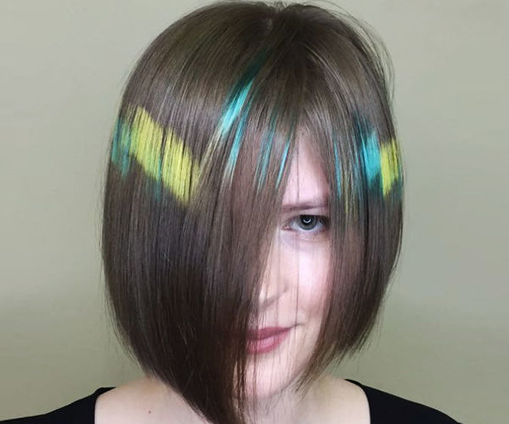 Как уже упоминалось, идеальный вариант прически для пикселирования – асимметричная стрижка. Если вы не готовы резать волосы – ничего страшного. Пиксели можно наносить на пряди любой длины. Главное, чтобы они были прямыми.