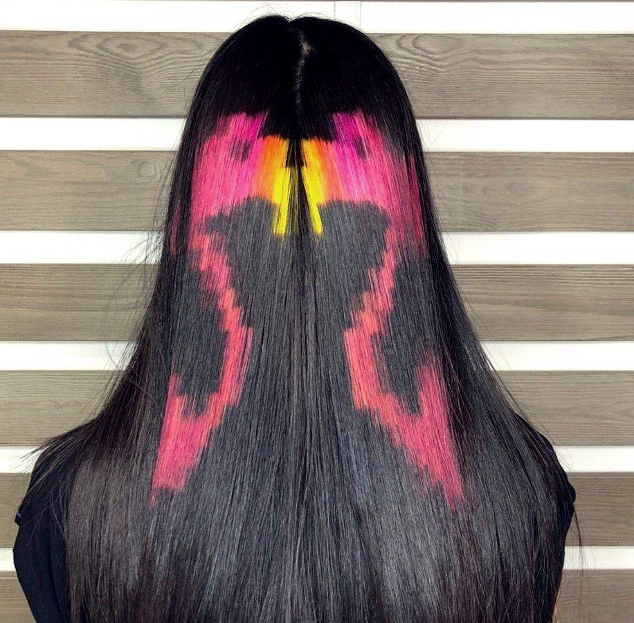 Пиксельный рисунок четко виден только когда волосы хорошо выпрямлены и высушены. Кудрявым девушкам не подойдет такой вид окрашивания, из-за волнистых волос эффект от нанесенного рисунка будет не таким интересным. Чем аккуратнее будет ваша укладка, тем лучше будет виден рисунок.