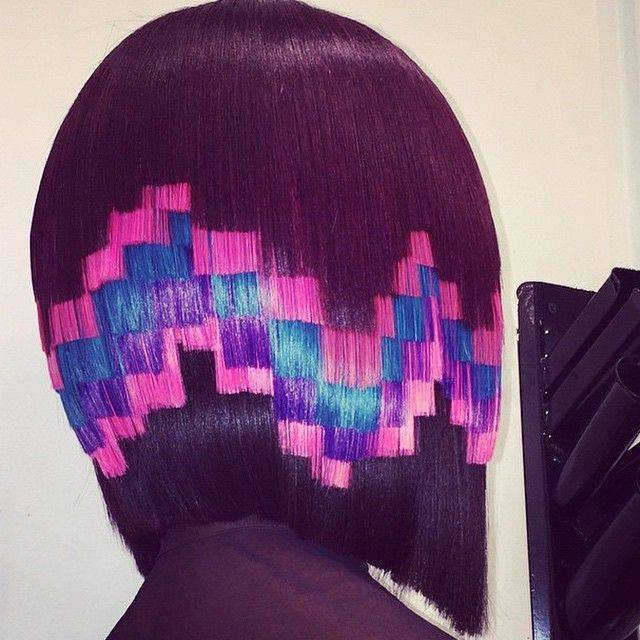 Стилисты уверены, что вскоре большие города наполнятся смелыми барышнями с ярким пиксельным узором вместо стандартного омбре, мелирования или однотонного окрашивания. А что думаешь ты об этом?
