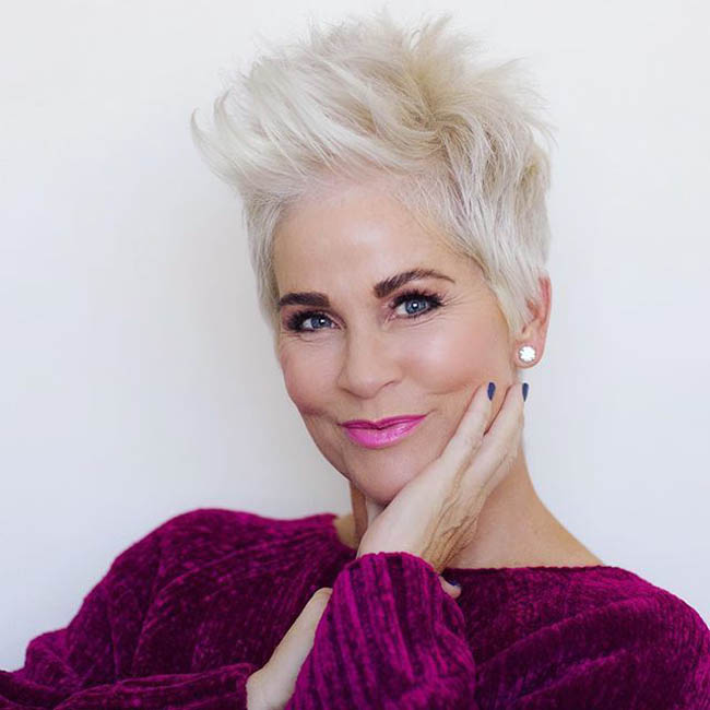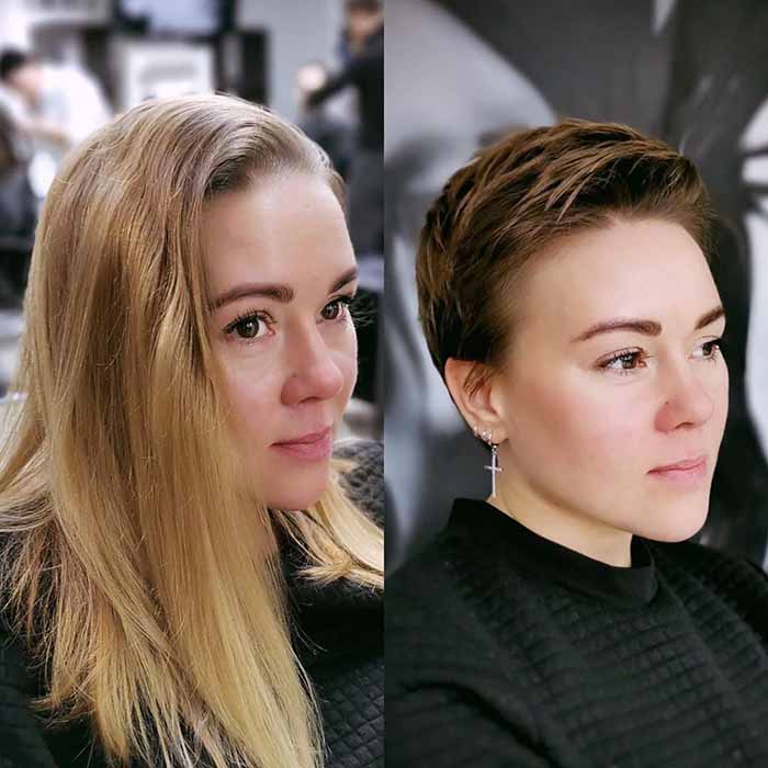 Женщинам за 40 стоит делать динамичную укладку стрижки пикси, чтобы она добавляла «огонька» глазам, отвлекала от морщинок и прочих мелких несовершенств. Не нужно бояться асимметрии и градуировок, так как они заметно освежают, омолаживают и идут на пользу внешности.