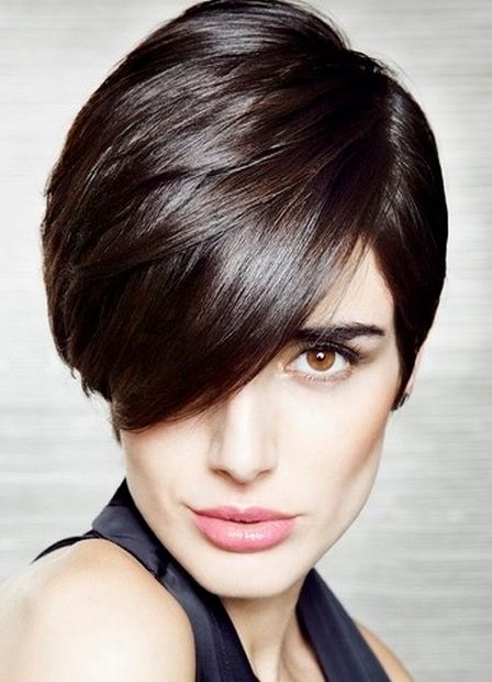 С короткой мини челкой подойдет хрупким, стройным барышням с выразительными чертами лица. Отсутствие удлинения позволяет экспериментировать только с пробором. Выполняется на коротких локонах, кончики подаются легкой филировке. Сочетается с монохромными классическими окрашиваниями в натуральной гамме блонда, каштана, современные тенденции предлагают тонирование с помощью пепельных, платиновых, фиолетовых оттенков.