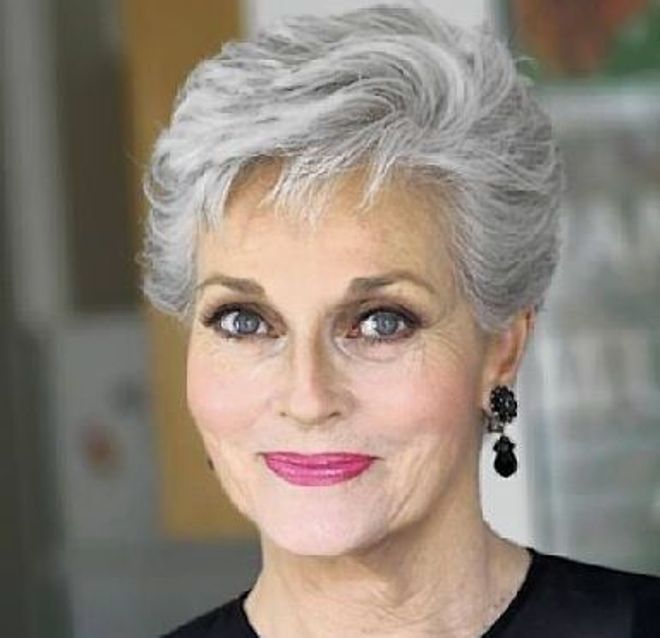Платиновый блонд – не просто модный цвет, но и способ выглядеть значительно моложе своих лет, но при этом не потерять ни капли элегантности. А короткие волосы освежают лицо и не перегружают образ.