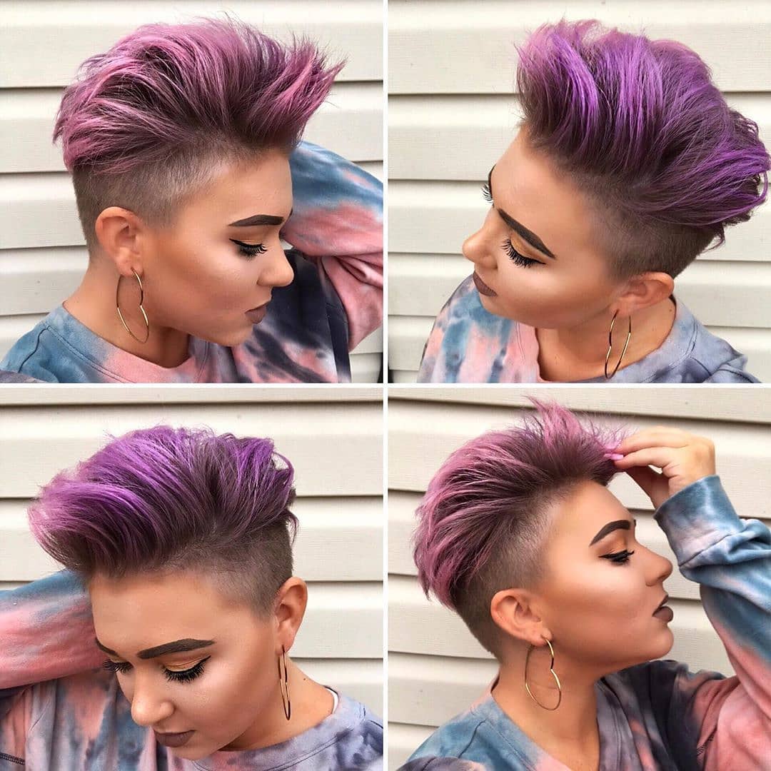 Для создания смелого и дерзкого образа можно выбрить виски или сделать необычное окрашивание.