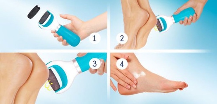 Важно не злоупотреблять устройством, не стоит долго обрабатывать одно и то же место (не больше 3 секунд), если перестараться, то живой эпителий легко повредить. После использования надо помыть ноги обычной водой и нанести увлажняющий крем