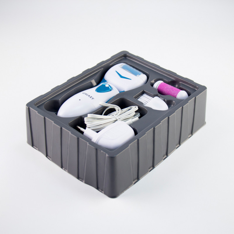 Это целый набор, состоящий из самого аппарата по уходу за кожей, абразива в виде круга, щеточки, скраба для ног, флакона с бальзамом, пилинга-сыворотки. Набор приятно удивит комплектацией. Как отмечают пользователи, больших результатов ждать не стоит, она помогает только стопам не в сильно запущенной стадии. Цена на данную модель варьируется от 8000 руб.