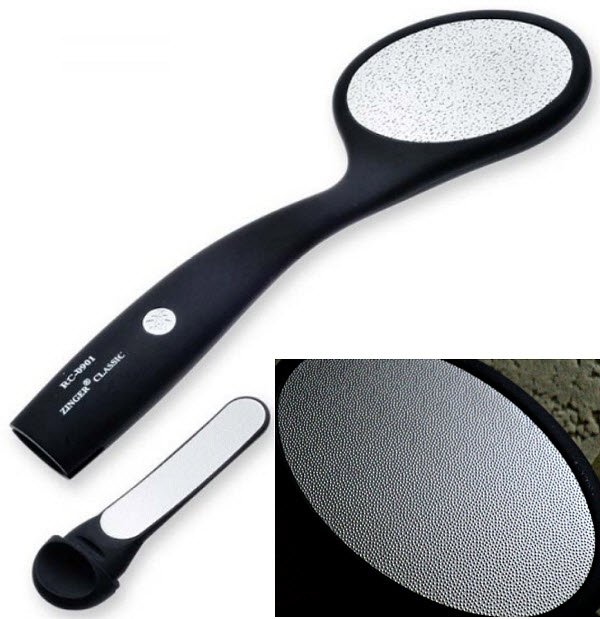 Одним из дешевых для обработки стопы является прибор, который имеет покрытие из наждачной бумаги. Данным инструментом легко справиться с грубой кожей на пятках. К недостатку подобного вида относят – травматизацию нежной поверхности стопы.