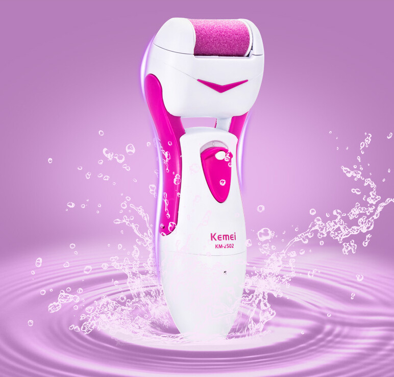 - Kemei. Требует зарядки, которой хватает на 8-10 часов. Продается в большой коробке, по стоимости дешевле пилки «Шолль». В наборе идет два насадки, щеточка для очистки. Ручка толстая, не очень удобно держать.
