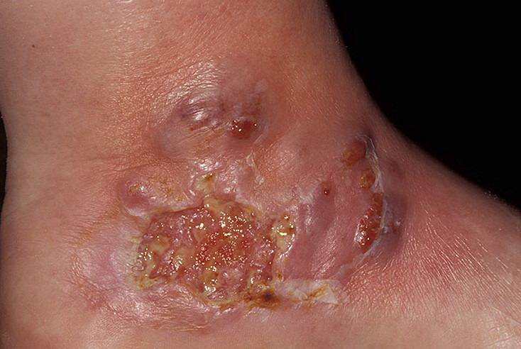 - Язвенная пиодермия хронического характера развивается в районе голени после эктимы или фурункула. Если организм пациента истощен, то язвы после заболеваний могут не заживать длительное время. Болезненные поражения кожи сливаются друг с другом, образуя большой очаг.