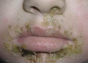 Иногда инфекция развивается на границе перехода кожи в слизистые оболочки (вблизи губ, век, носа и даже половых органов). Это так называемая мукокутанная пиодерма (или заболевание кожно-слизистых зон).