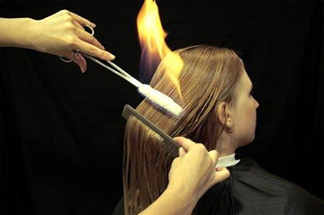 По технологии огонь не касается волосков. На них воздействует только жар пламени. Так что можете не бояться фаер-шоу, происходящего у вашей головы. Главное, перед тем как на него согласиться, проверьте, что ваш парикмахер имеет специальный сертификат, подтверждающий, квалификацию.