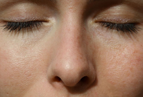 Можно нанести точечно крем на лицо и растушевать кисточкой. Если недостатки имеются значительные, то точки ставят уверенные и большие в местах проявления (пигментации, покраснений), а растушевка происходит не интенсивная.