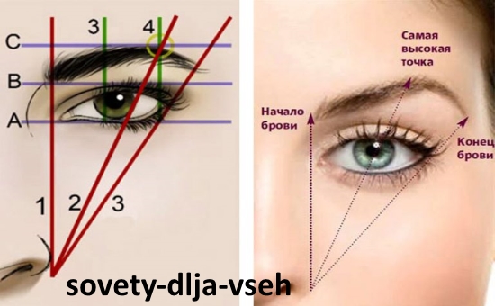 Бровь состоит из трех точек – основания, подъема и кончика.